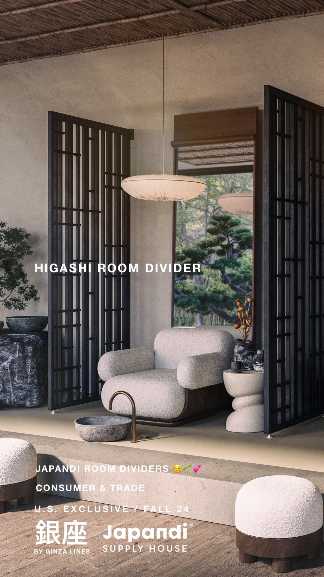 Renowned in the Netherlands, Ginza Lines Room Dividers and wall art arrive in the U.S. for the first time, only at Japandi Supply House.